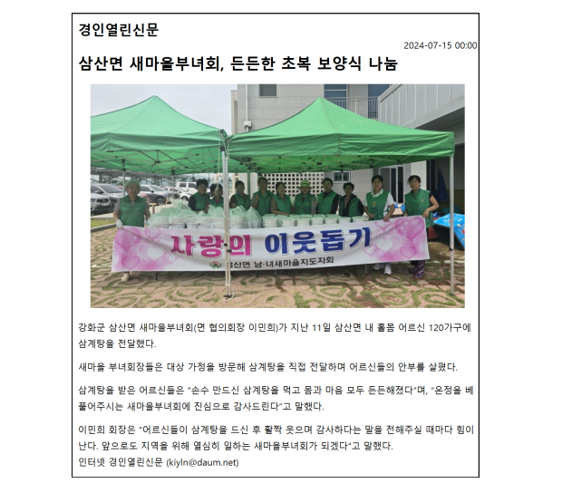 삼산면 새마을부녀회, 든든한 초복 보양식 나눔