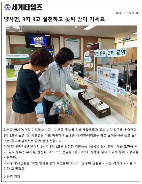 양사면 3따3고 꽃씨 창구 개설