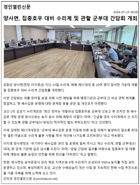 양사면 수리계 간담회 실시