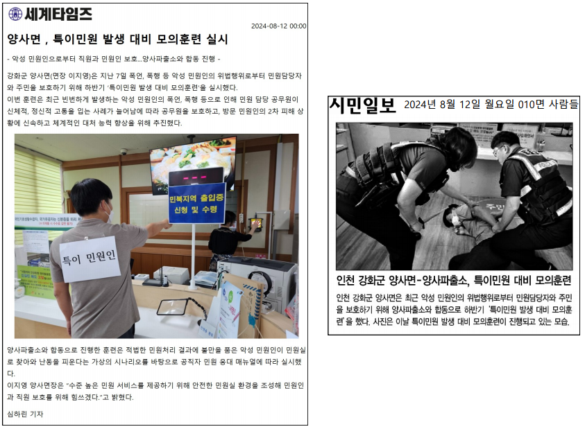 양사면 특이민원 발생 대비 모의훈련 실시