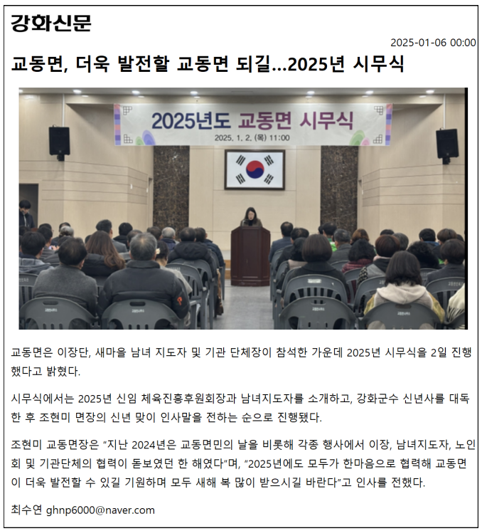 교동면 2025년 시무식 개최