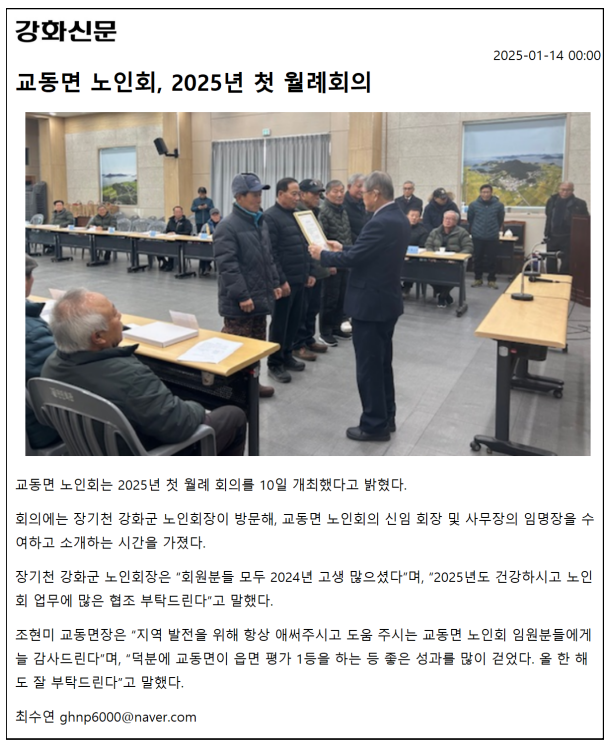 교동면 노인회, 2025년 첫 월례회의