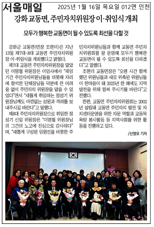 교동면 주민자치위원장 이·취임식 개최