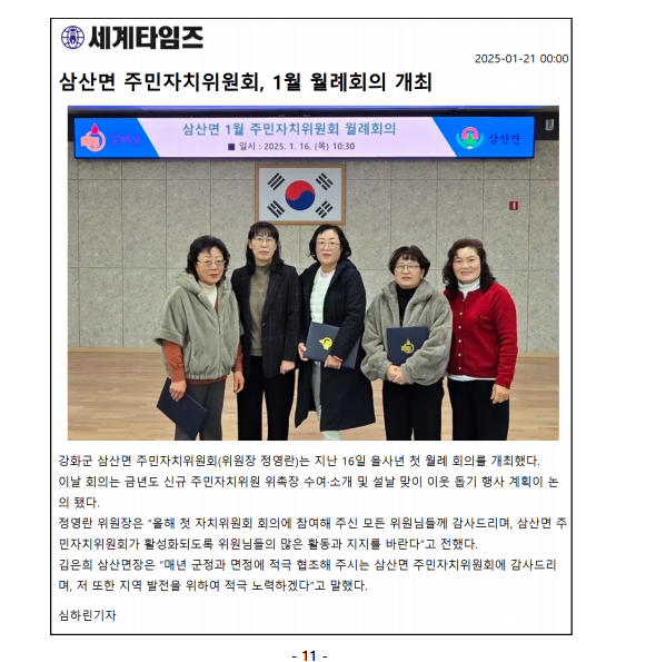 삼산면 주민자치위원회, 1월 월례회의 개최