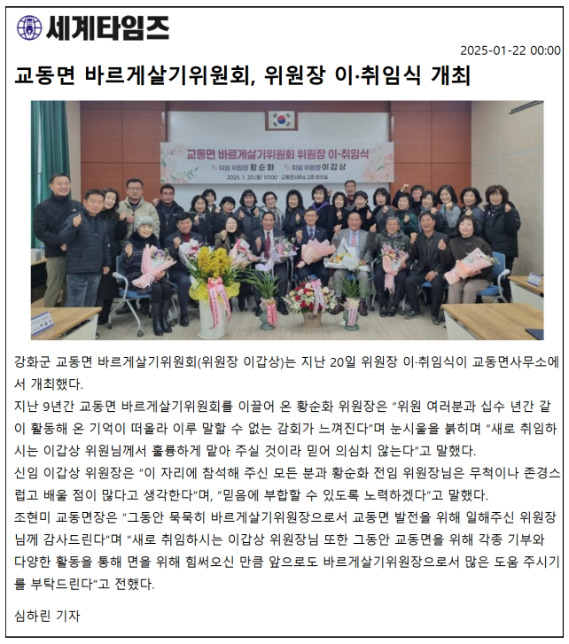 교동면 바르게살기위원회 위원장 이·취임식 개최