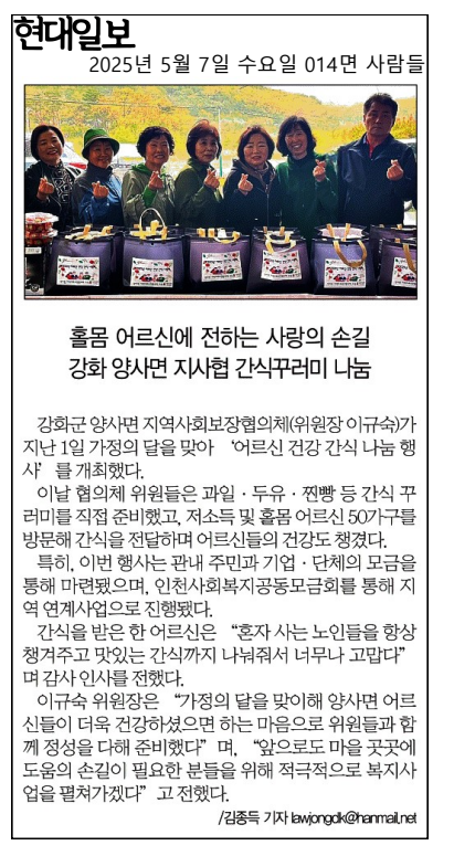 양사면 지역사회보장협의체 간식꾸러미 나눔