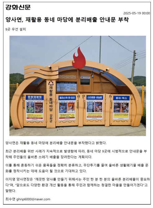 양사면, 재활용 동네 마당에 분리배출 안내문 부착