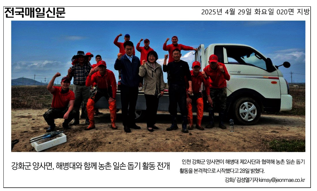 양사면, 해병대와 함께 농촌 일손 돕기 활동 전개