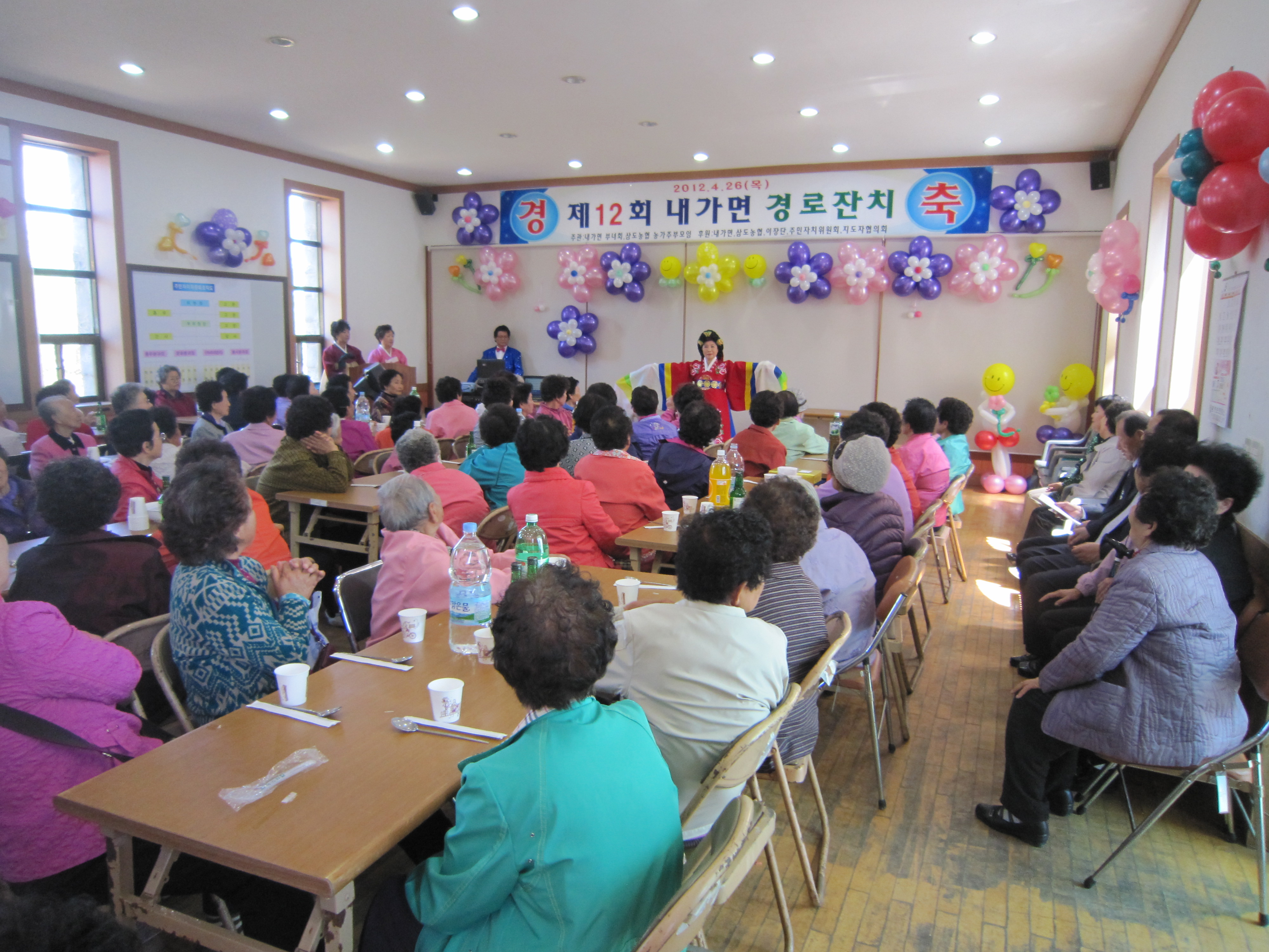 주관으로 내가면사무소, 삼도농협, 주민자치위원회 등이 후원하는 제12회 내가면 경로잔치를