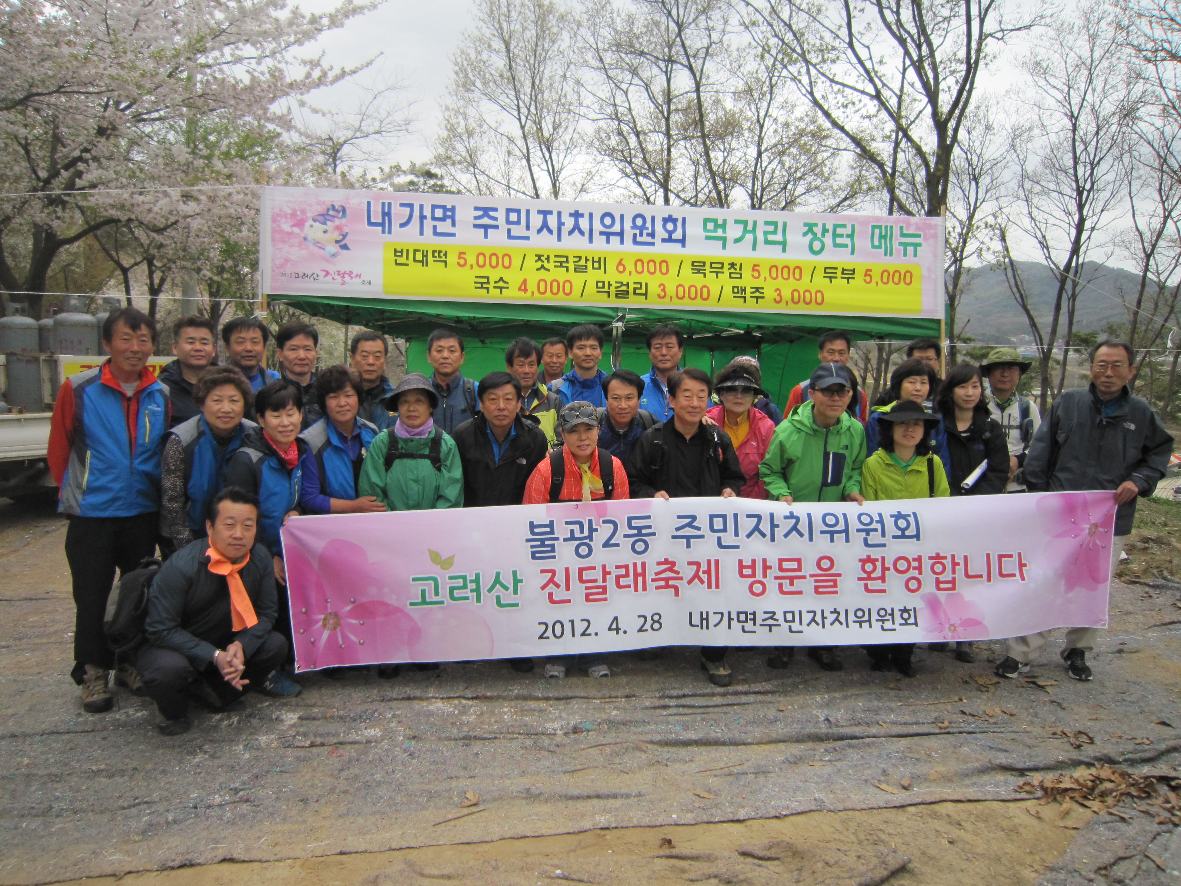 추진한 것으로, 이날 등산은 내가면장 및 불광2동장 등 40명이 함께하였으며 다들 진달래로