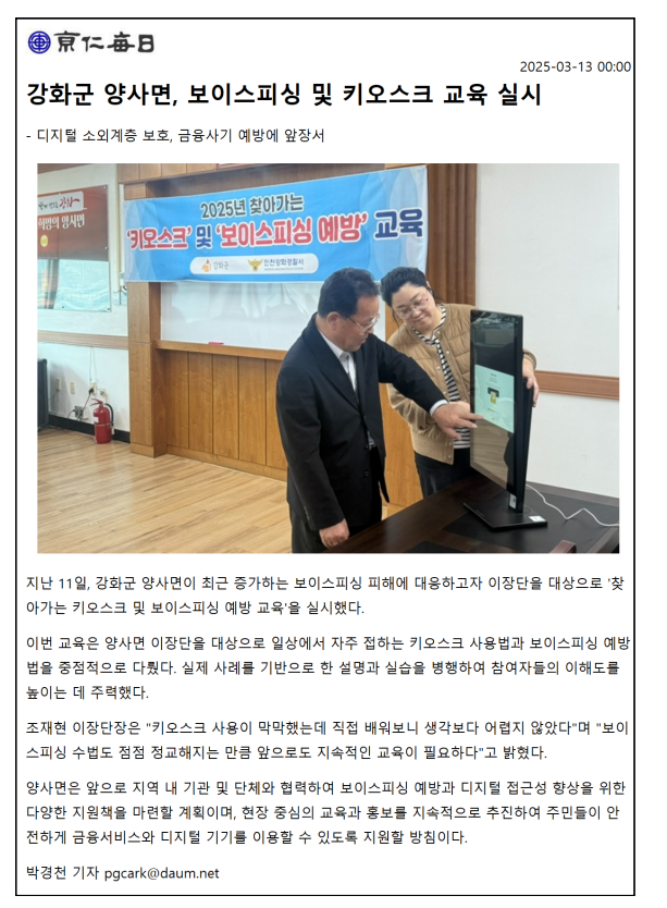 양사면 이장단, 보이스피싱 및 키오스크 교육 실시