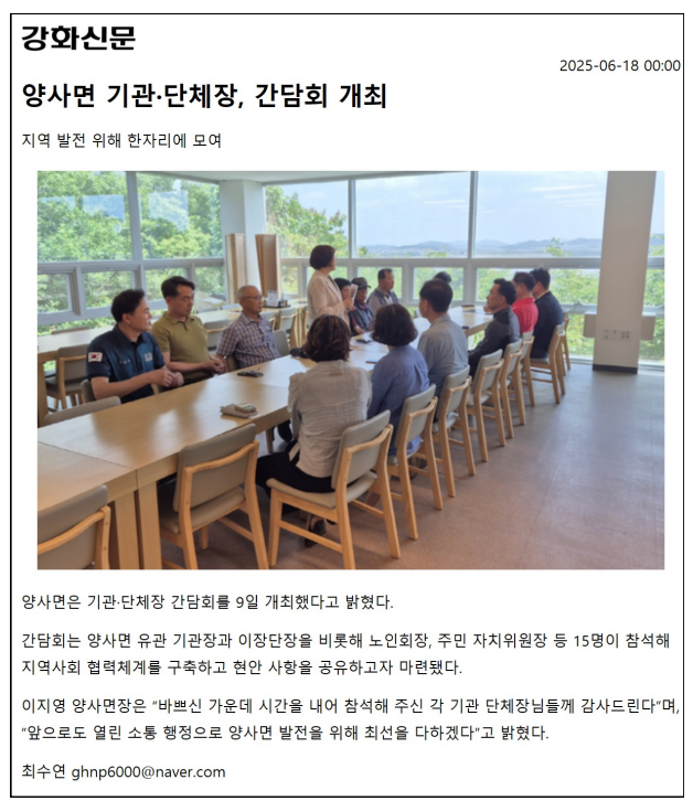 양사면 기관 및 단체장 간담회 개최