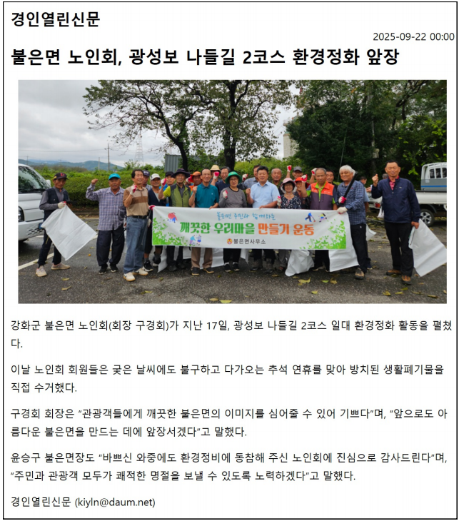 불은면 노인회, 광성보 나들길 2코스 환경정화 앞장