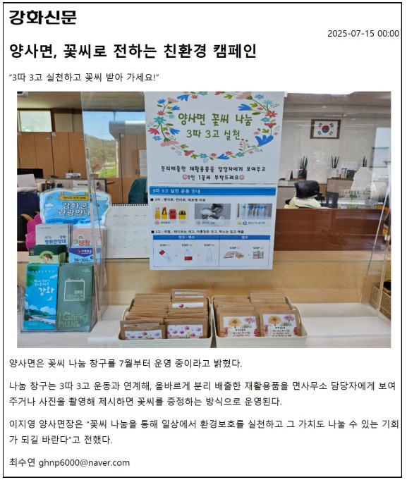 양사면, 꽃씨 나누어주기 실시