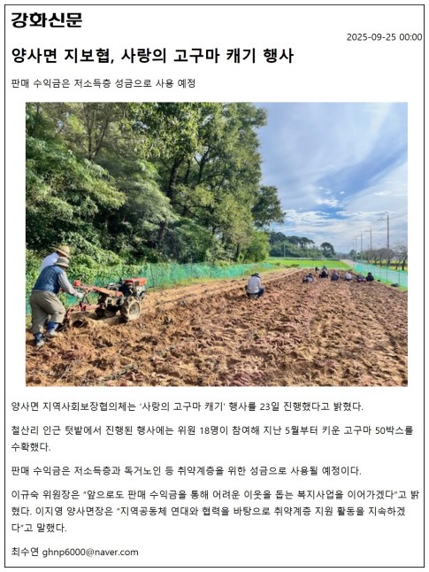 양사면 지역사회보장협의체, 사랑의 고구마캐기 행사 진행