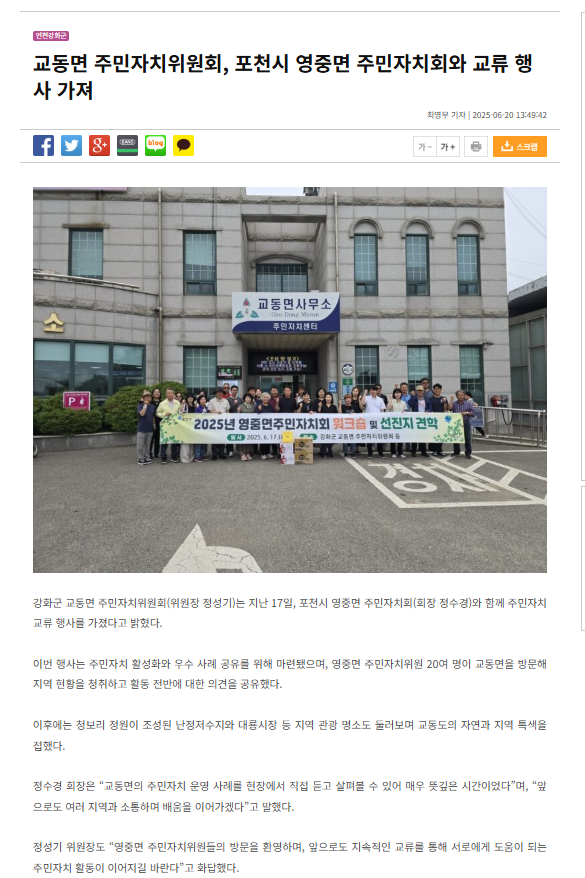 교동면 주민자치위원회, 포천시 영중면 주민자치회와 교류 행사 가져