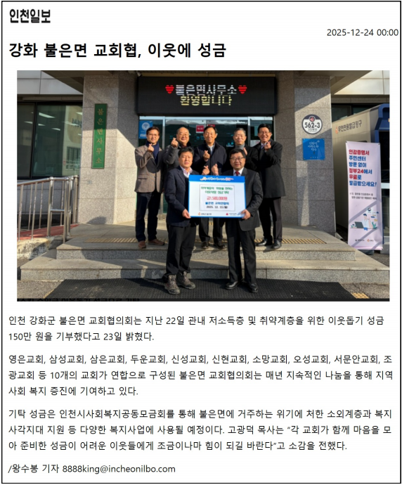 불은면 교회협의회, 이웃에 성금