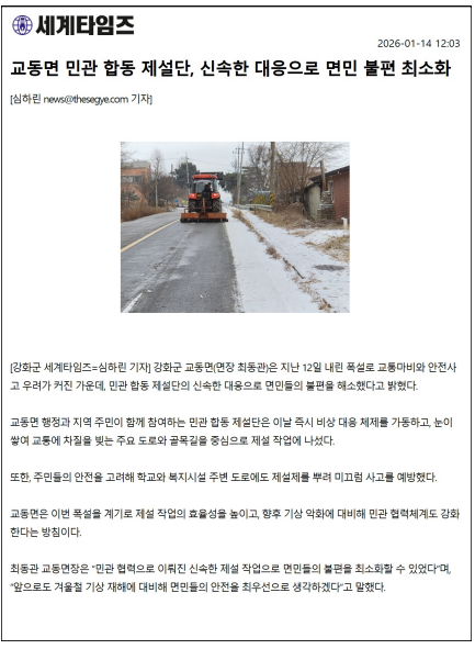 교동면 민관 합동 제설단, 신속한 대응으로 면민 불편 최소화