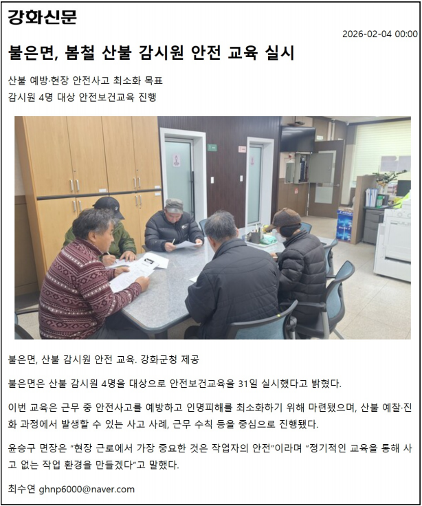 불은면, 봄철 산불 감시원 안전 교육 실시
