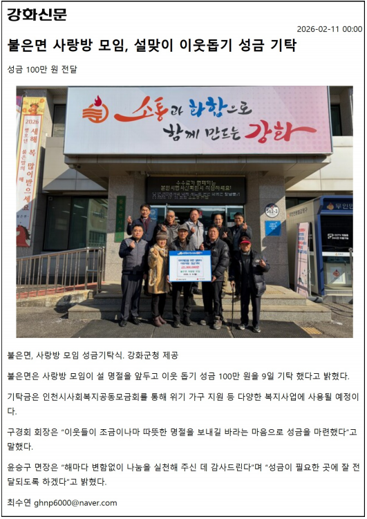 불은면 사랑방 모임, 설맞이 이웃돕기 성금 기탁