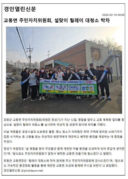 교동면 주민자치위원회, 설맞이 릴레이 대청소 박차