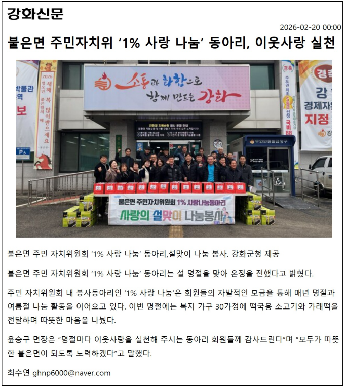 불은면 주민자치위원회 1%사랑나눔동아리, 이웃사랑 실천