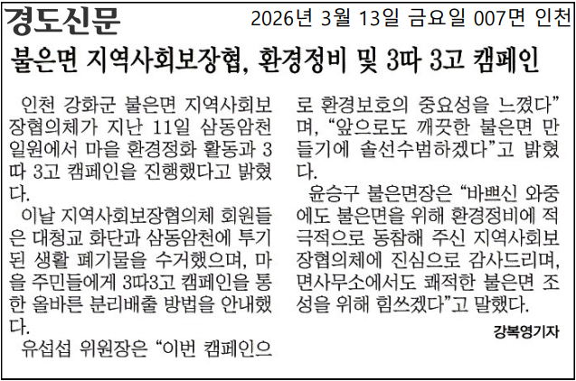 불은면 지역사회보장협의체, 환경정비 및 3따3고 캠페인