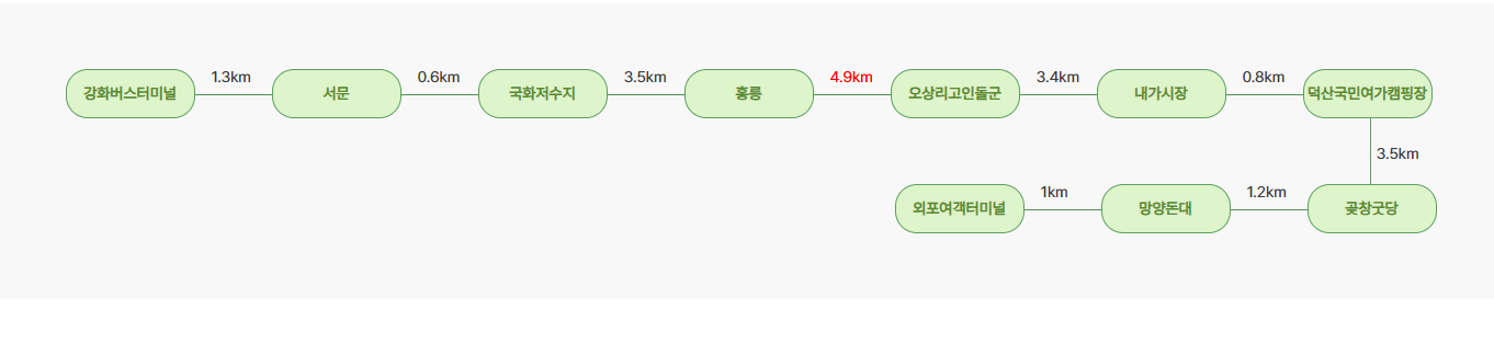 또한 코스 곳곳에는 역사와 문화가 어우러진 명소들이 자리하고 있습니다. 고려 왕릉인 홍릉, 선사시대의 흔적을 간직한 오상리 고인돌, 그리고 서해를 조망할 수 있는 군사 유적인 망양돈대는 걷는 여정에 깊이를 더해줍니다.