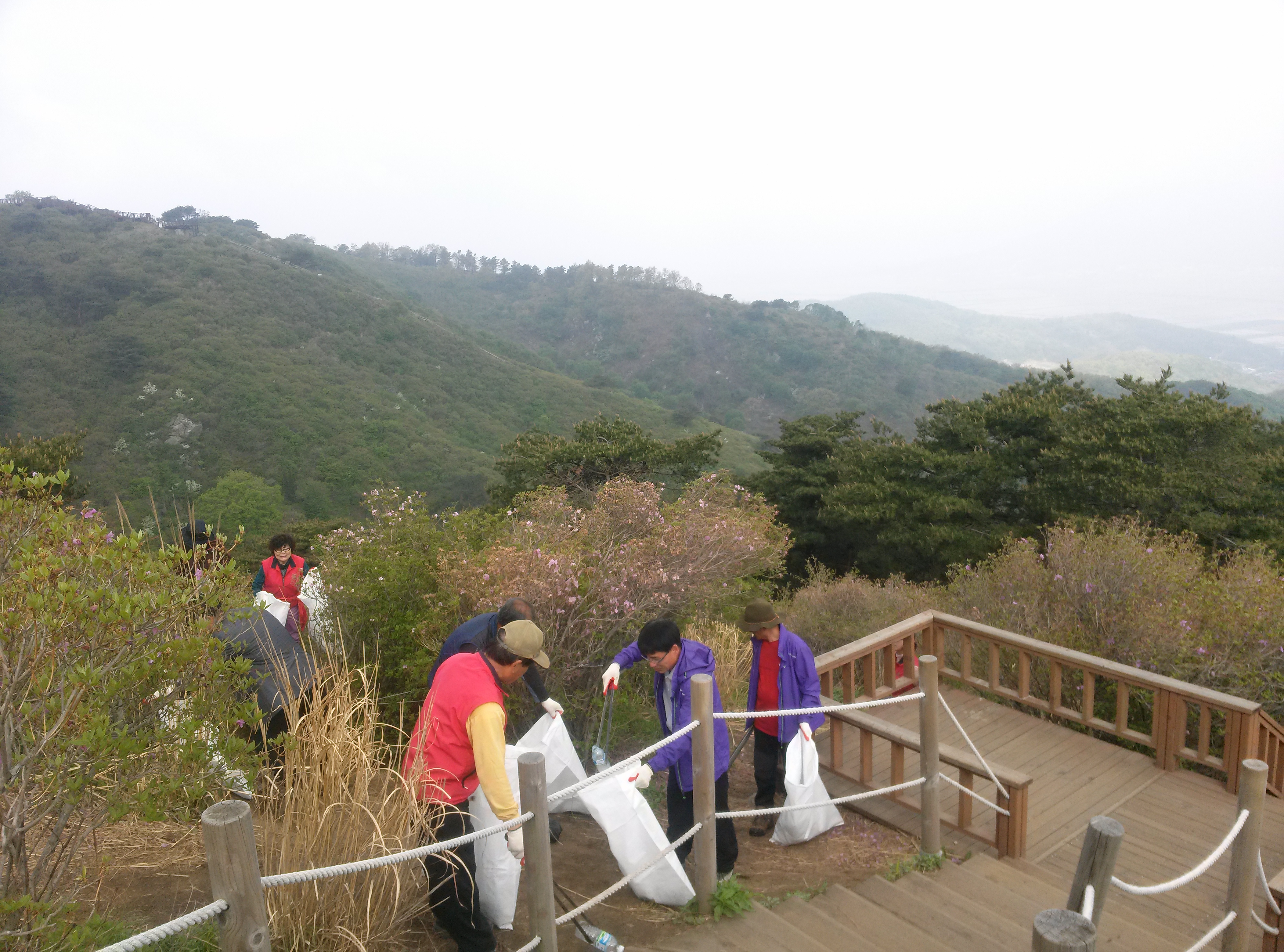 고려산 진달래 축제기간 동안 등산로에 버려진 쓰레기를