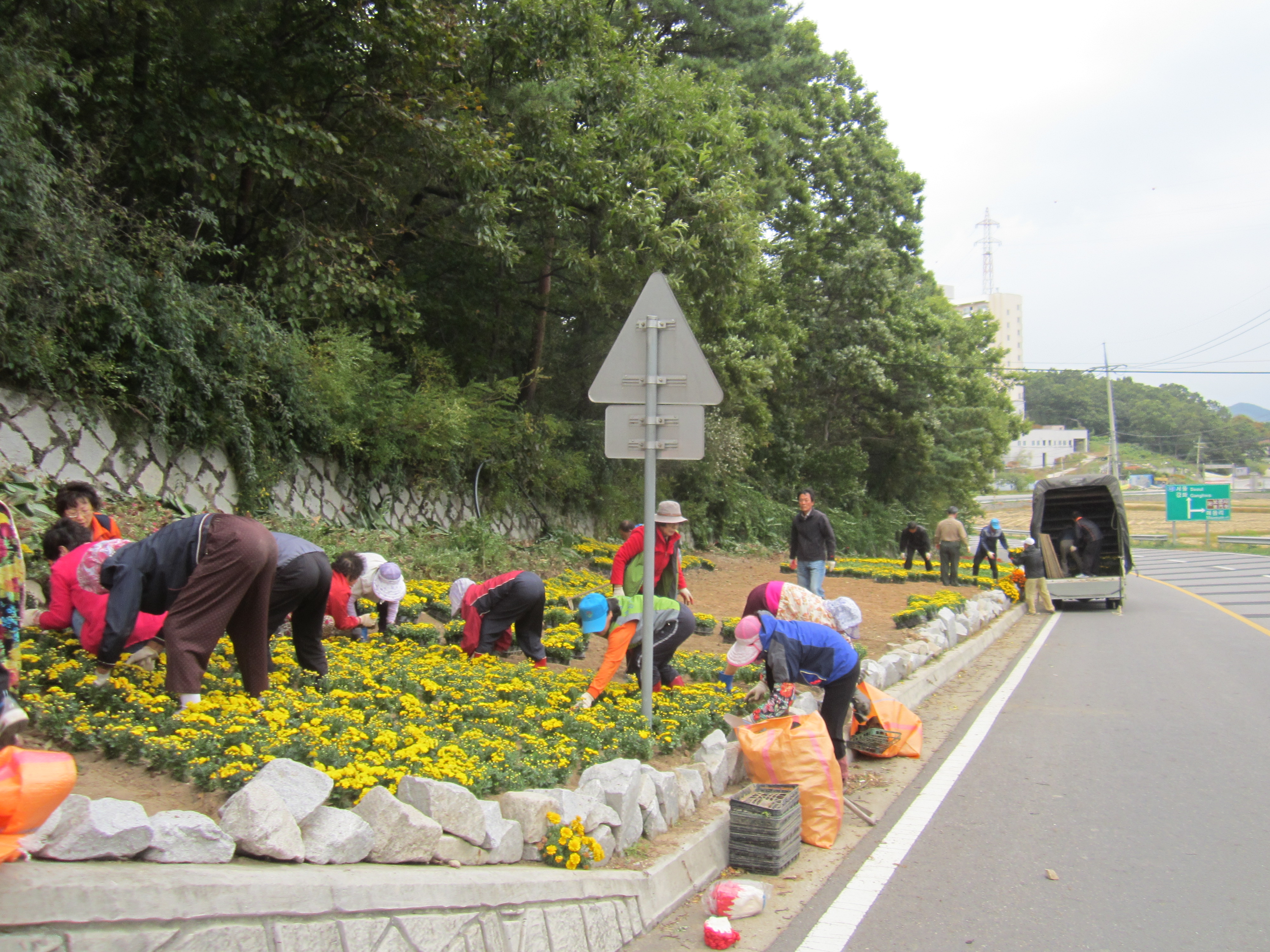 삼산면 주민자치위원회 노란국화 꽃밭 조성