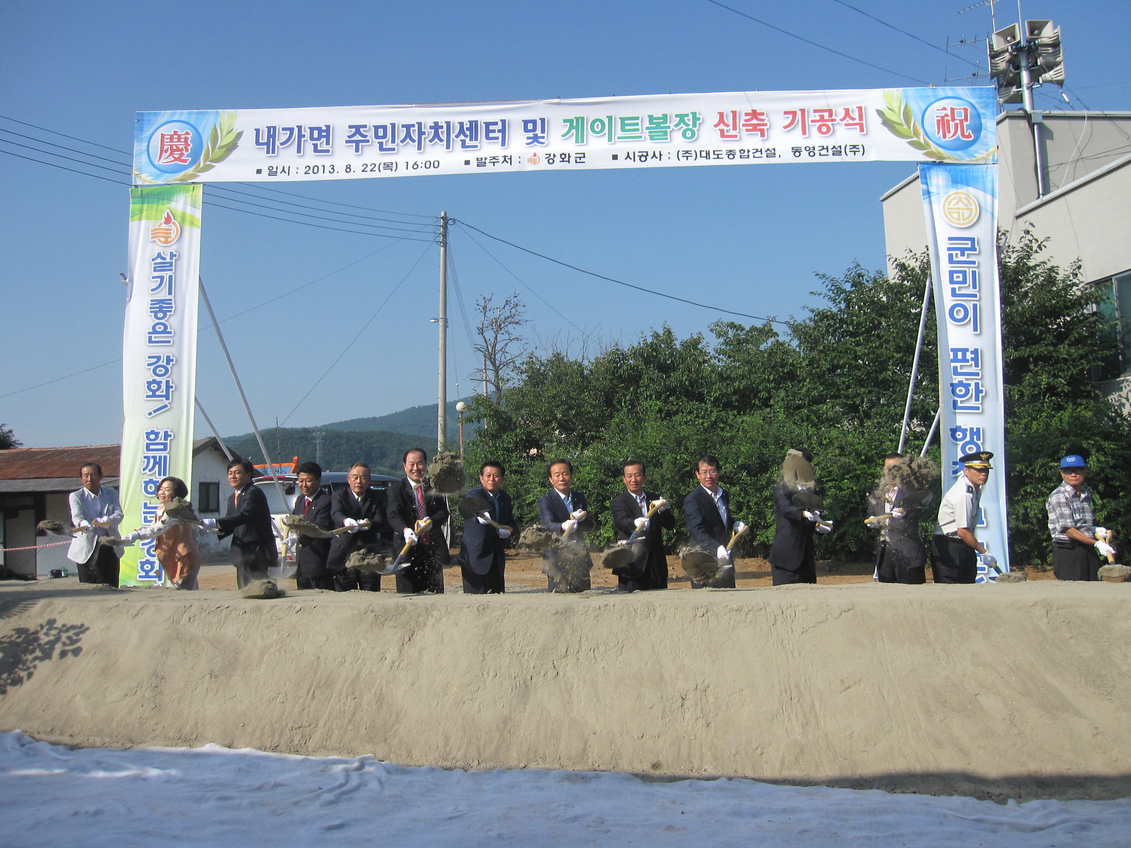 □ 강화군 내가면사무소(면장 계기춘)에서는 8.22(목) 유천호 강화군수를 비롯하여 관내·외 기관단체장과 주민 등 150여명이 참석한 가운데 내가면 주민자치센터 및 게이트볼장 기공식을 개최했다.