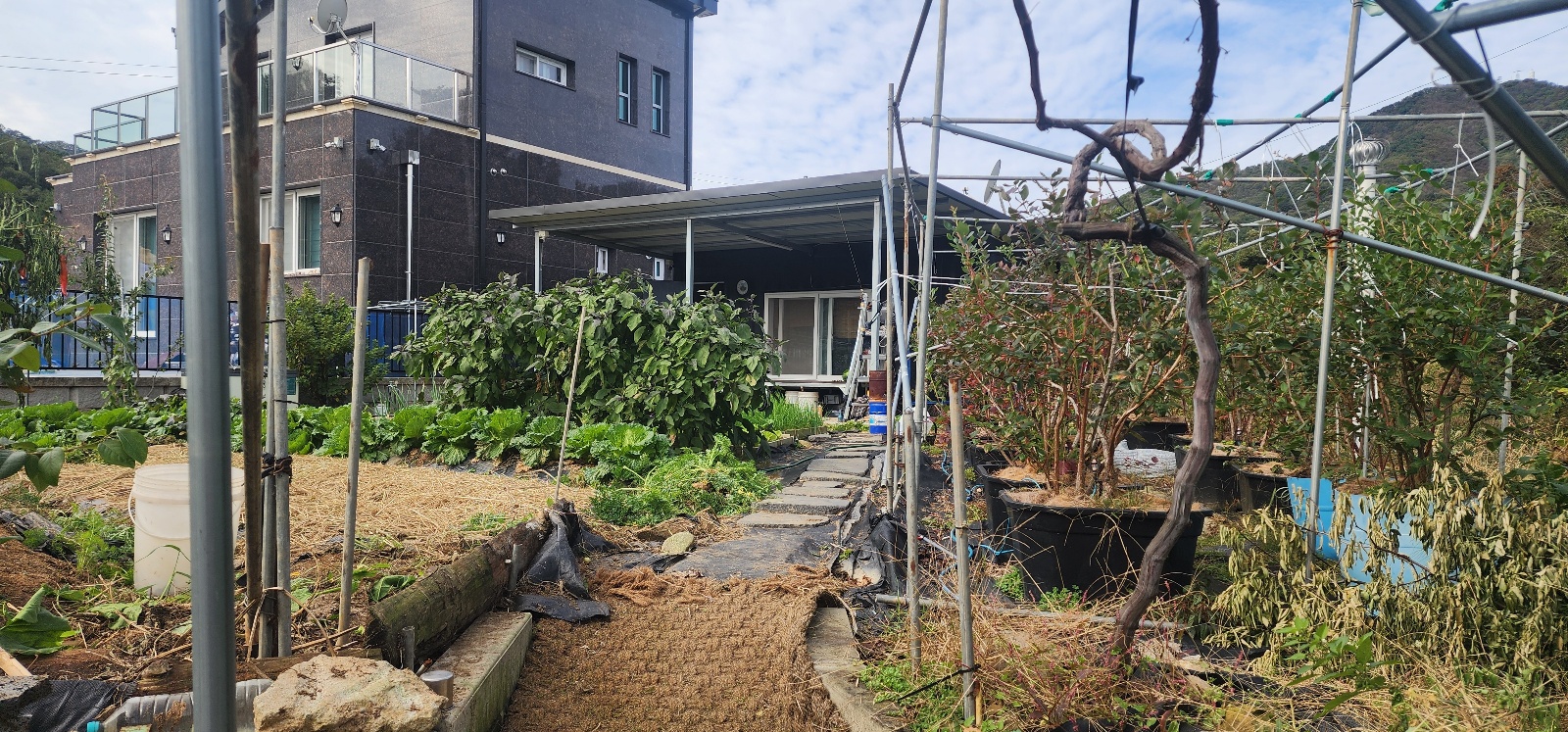 온갖 유실수: 블루베리,포도,사과,복숭아,감나무, 왕대추나무 등 다 있고 특히