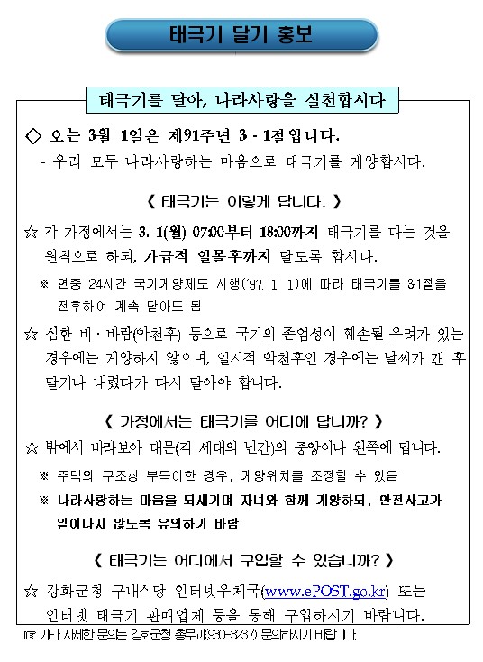 제91주년 3.1절 태극기 계양