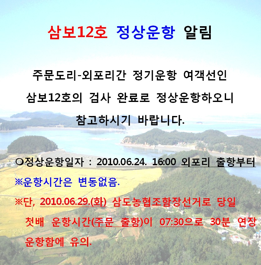 삼보12호 정상운항 알림