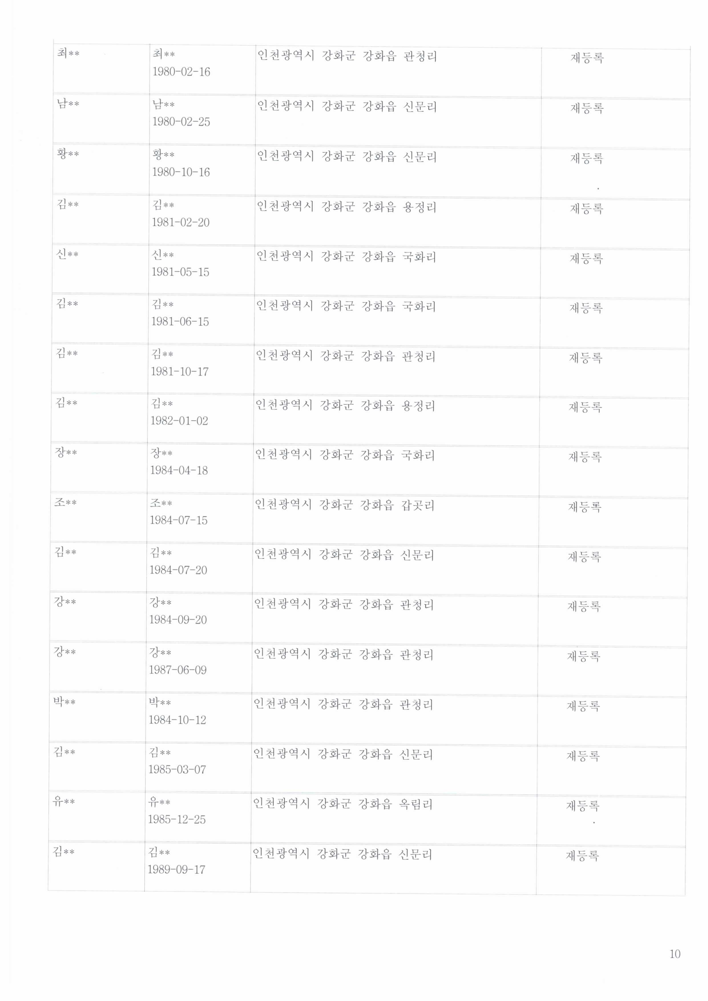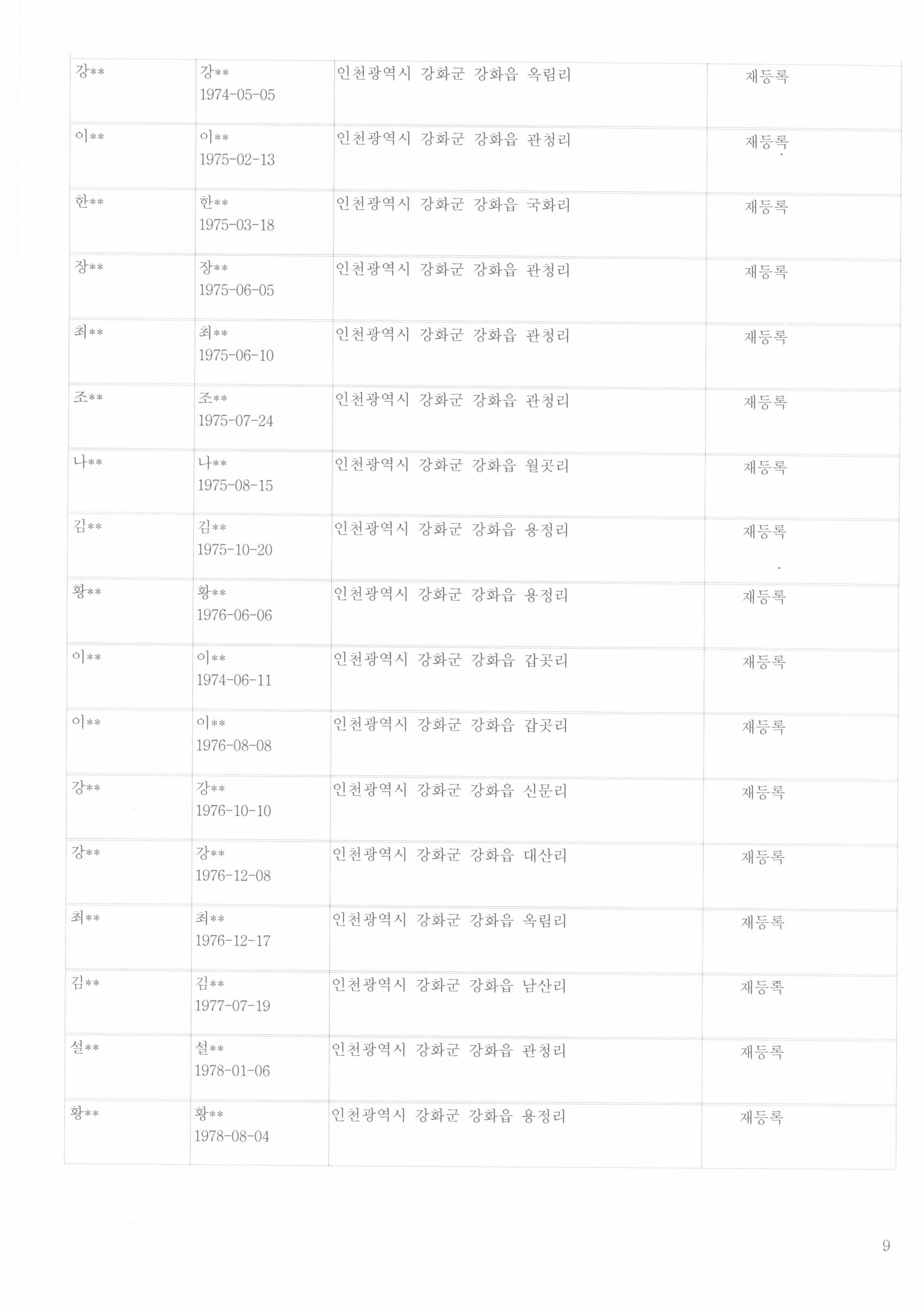 강화읍 주민등록 말소자의 거주불명등록 전환 공고입니다.