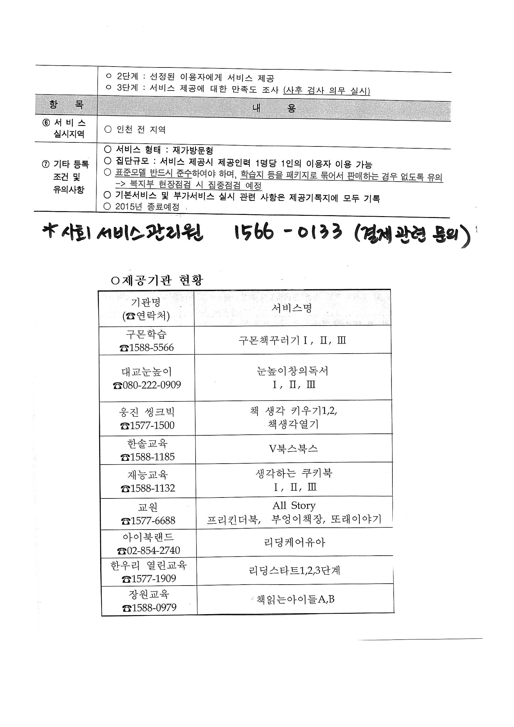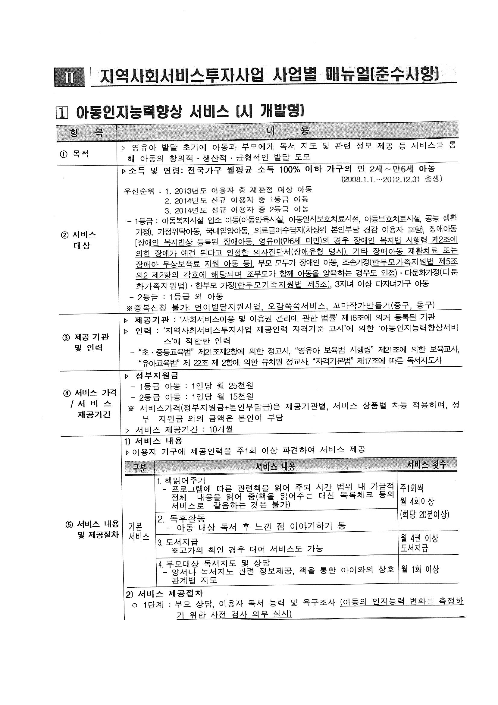 * 아동인지향상서비스 사업은 2015년 폐지 예정입니다.