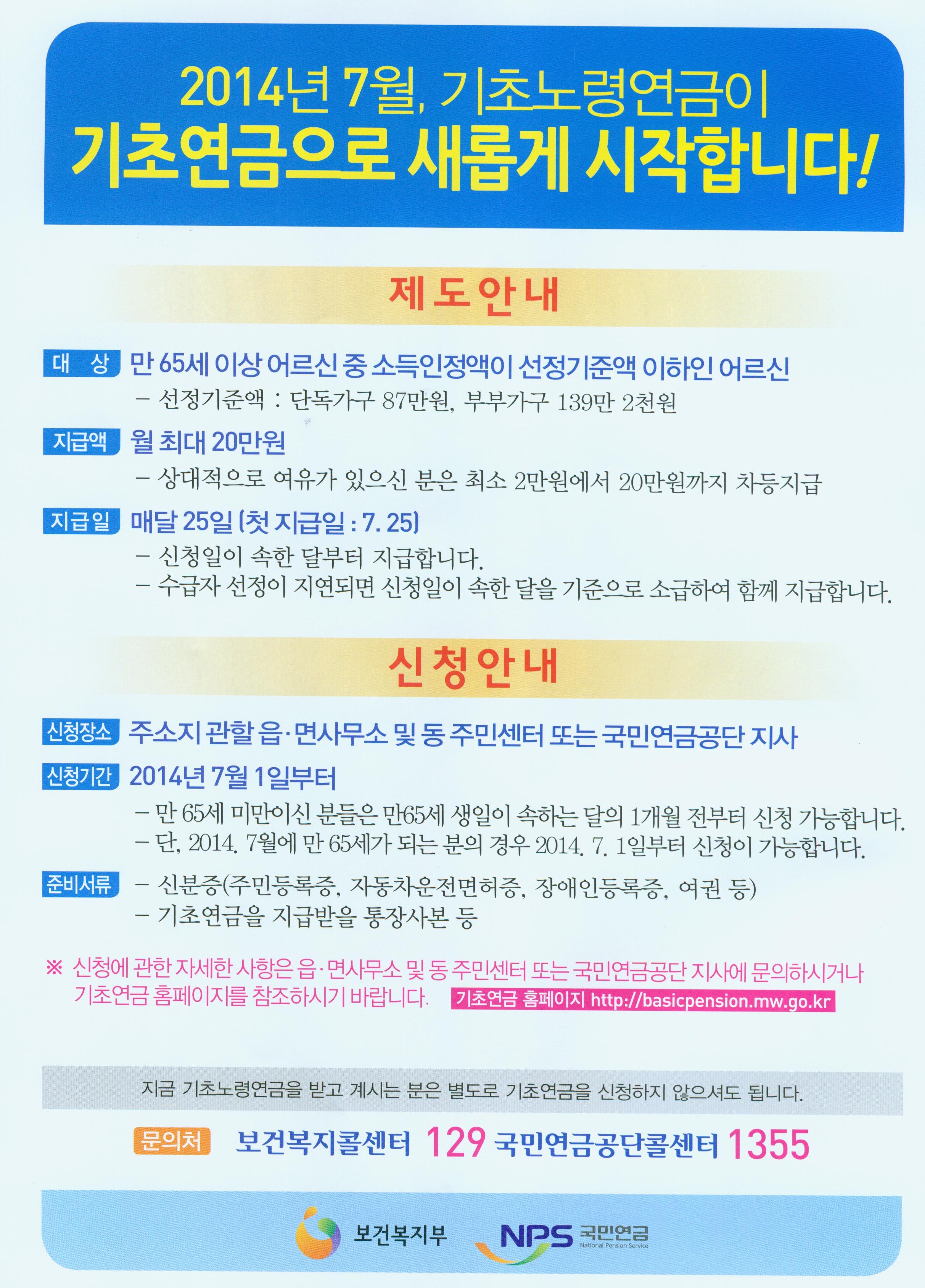 - 기초노령연금을 받고 있는 어르신은 따로 신청할 필요 없음