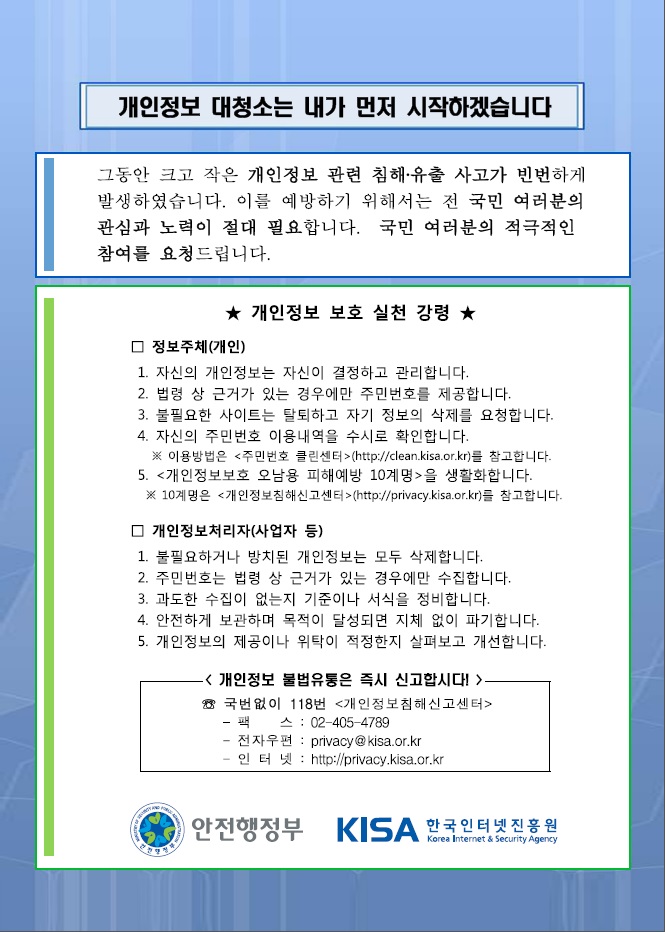 개인정보 대청소, 내 개인정보는 내가 지킨다!
