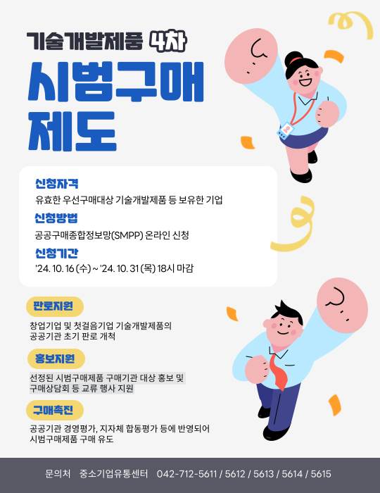 2024-4차 기술개발제품 시범구매제도 참여기업 모집 홍보