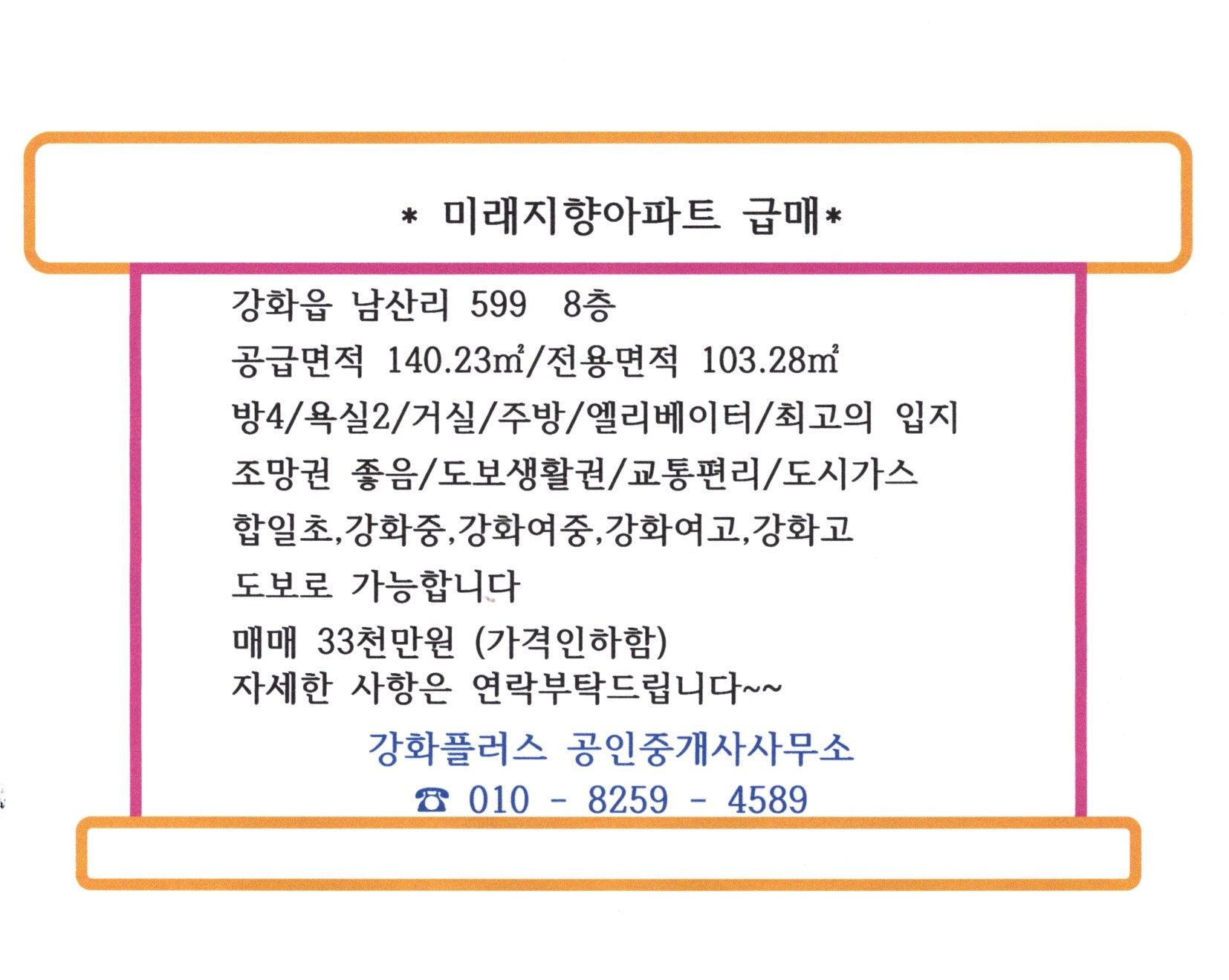 *최고의 입지 미래지향아파트 42평형 급매(가격인하/강화읍 남산리)*