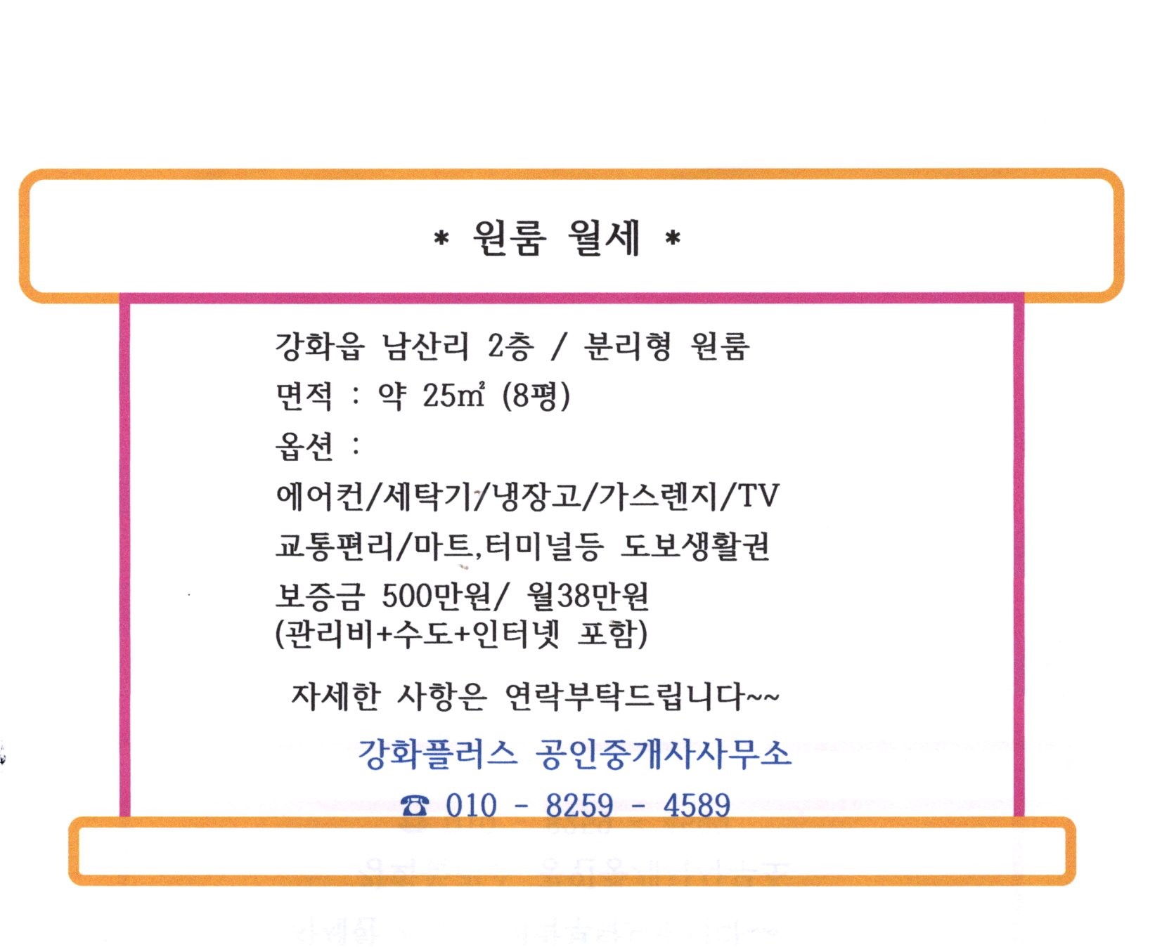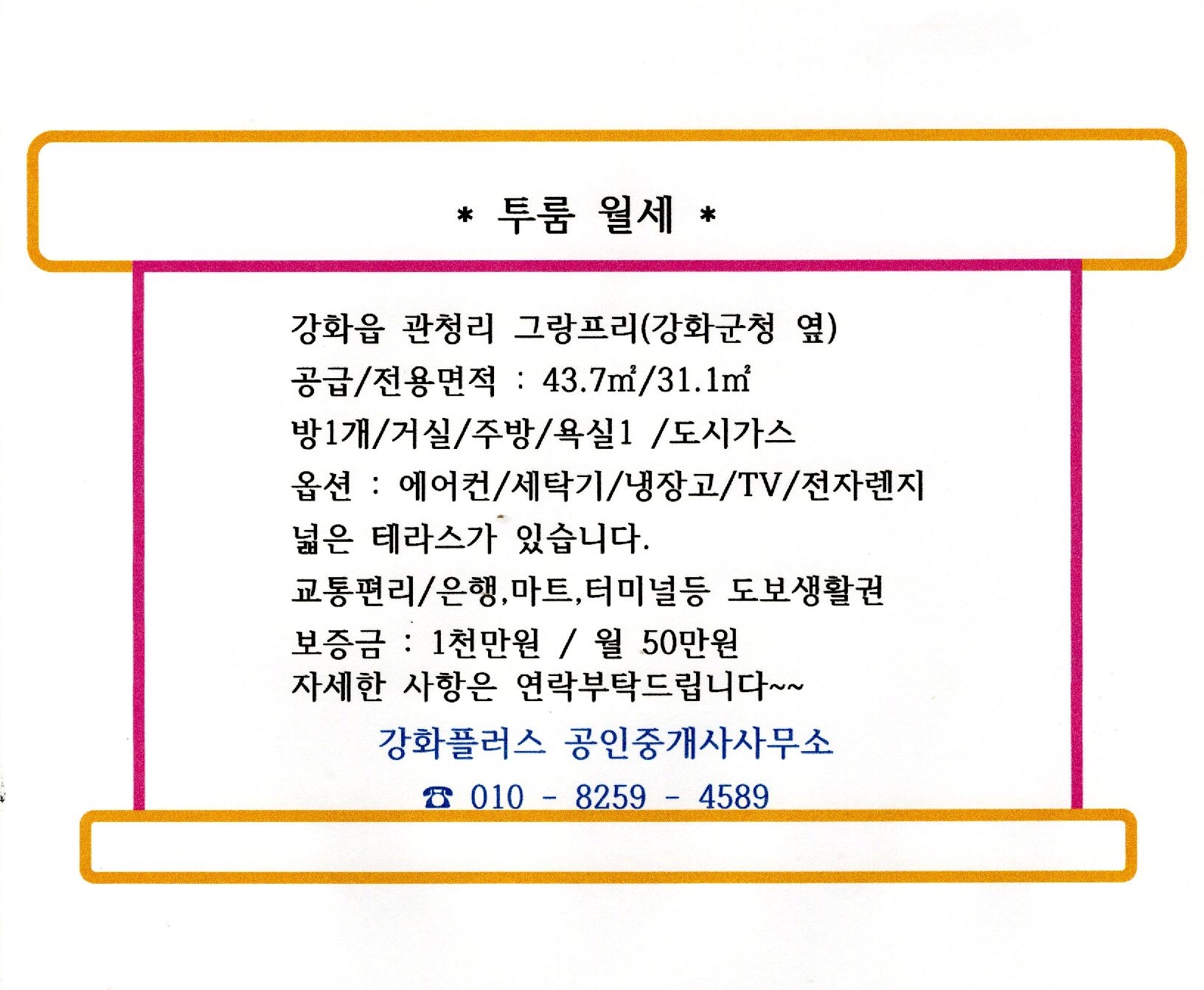 *원룸 월세(강화읍 남산리)/ 투룸 월세(그랑프리 강화읍 관청리 강화군청옆)*