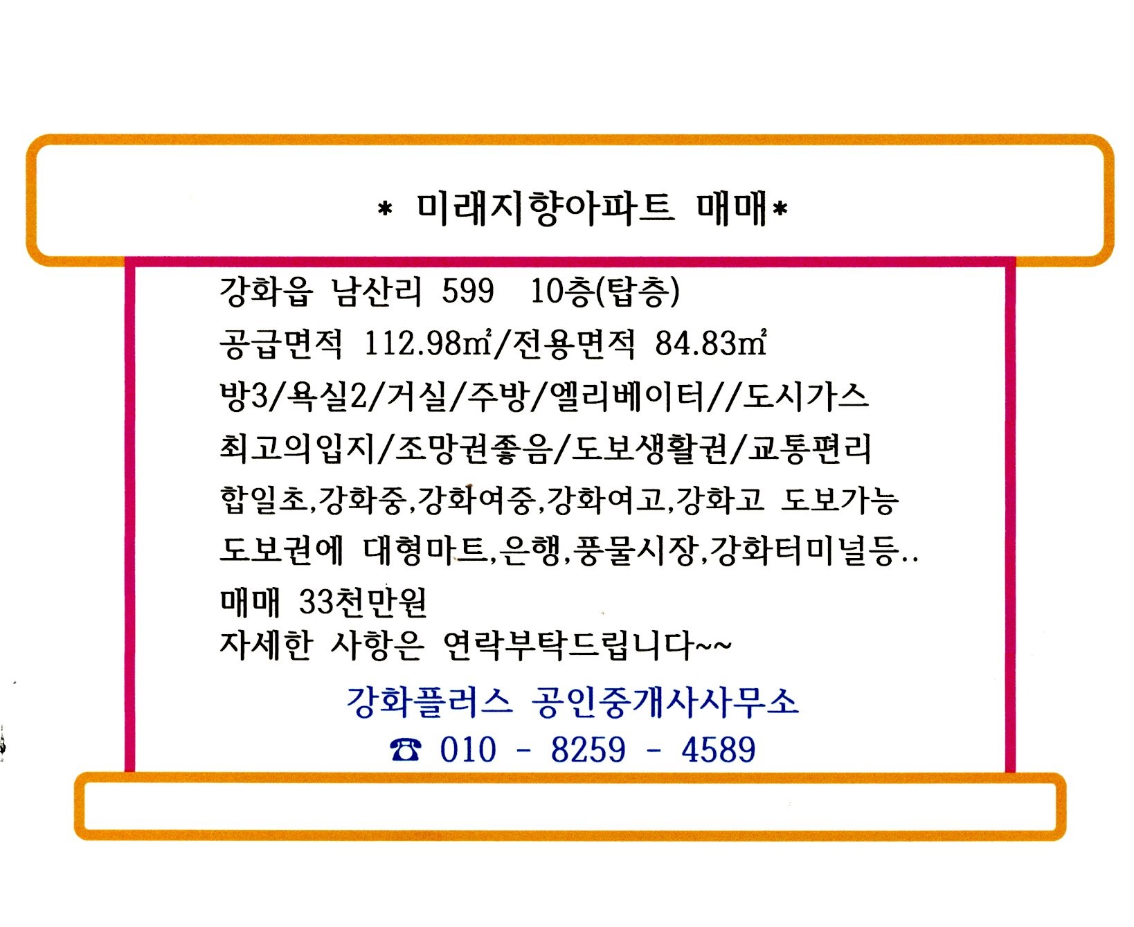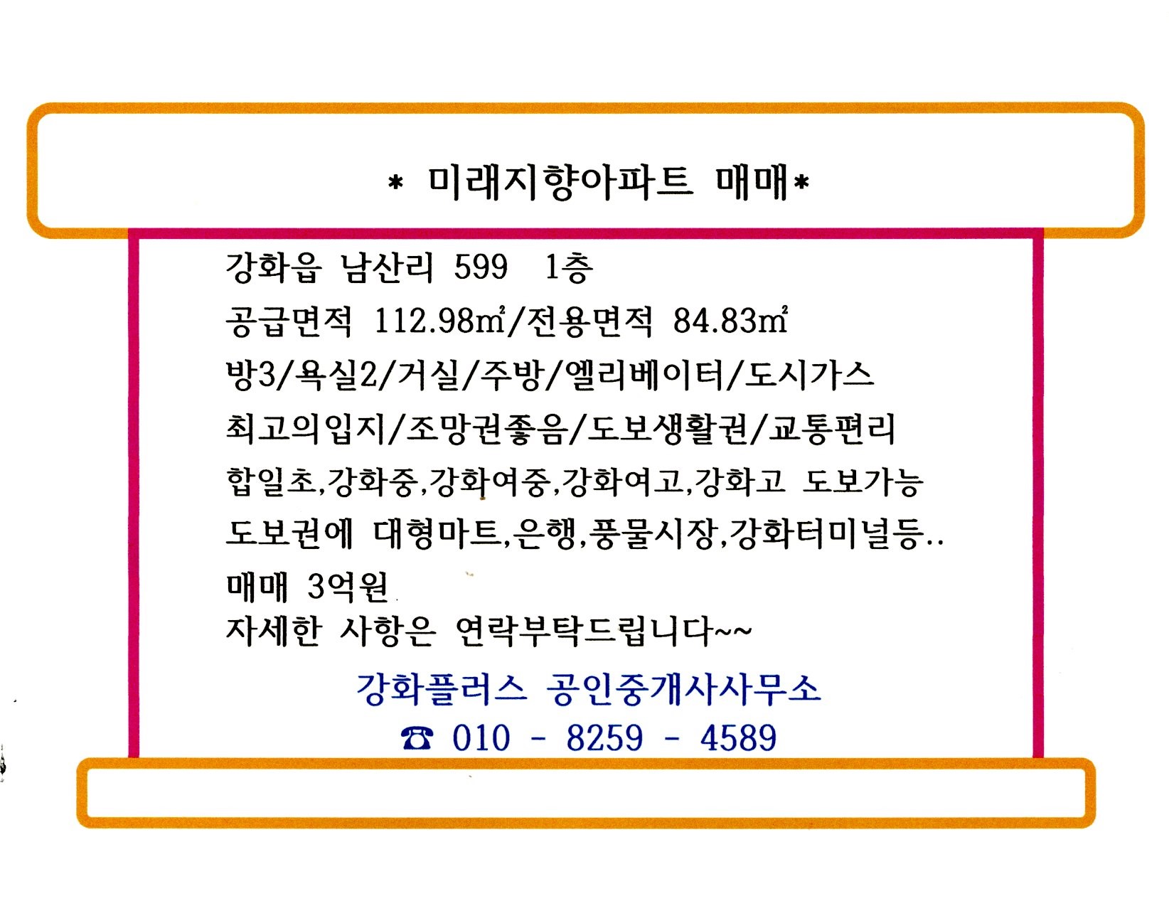 *미래지향아파트 34평형 매매(강화읍 남산리/도보생활권/위치좋음)*