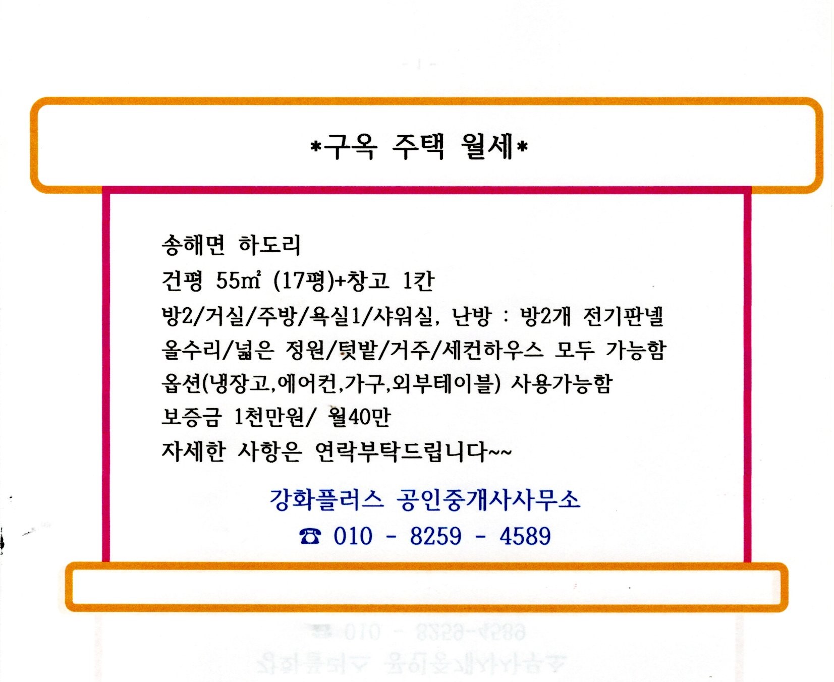 *옵션있는 구옥 월세 보증금1천만원/월40만원(송해면/내부수리되어 깨끗함)*
