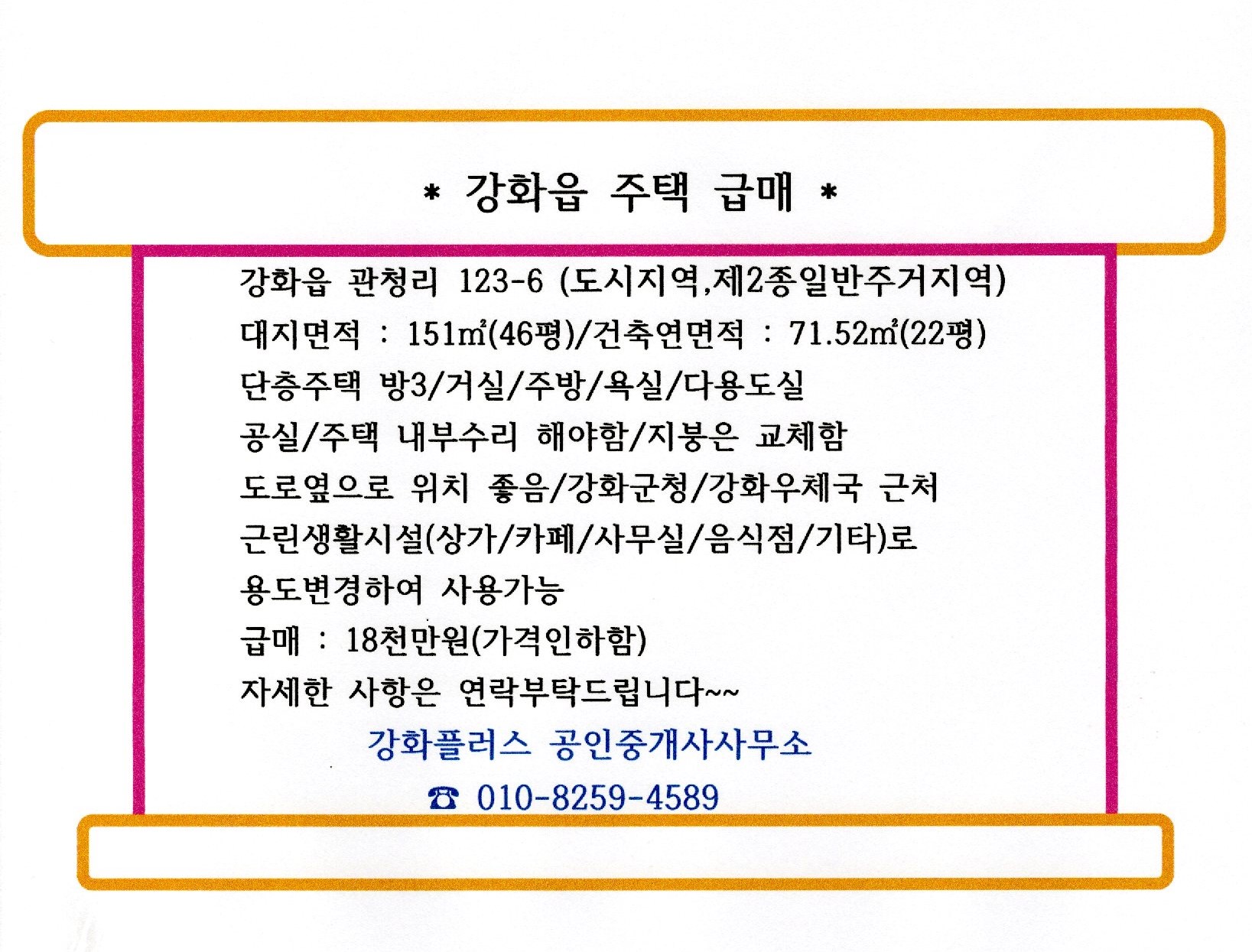 *다용도 활용가능한 시내중심부 단독주택 급매(강화읍 관청리)*