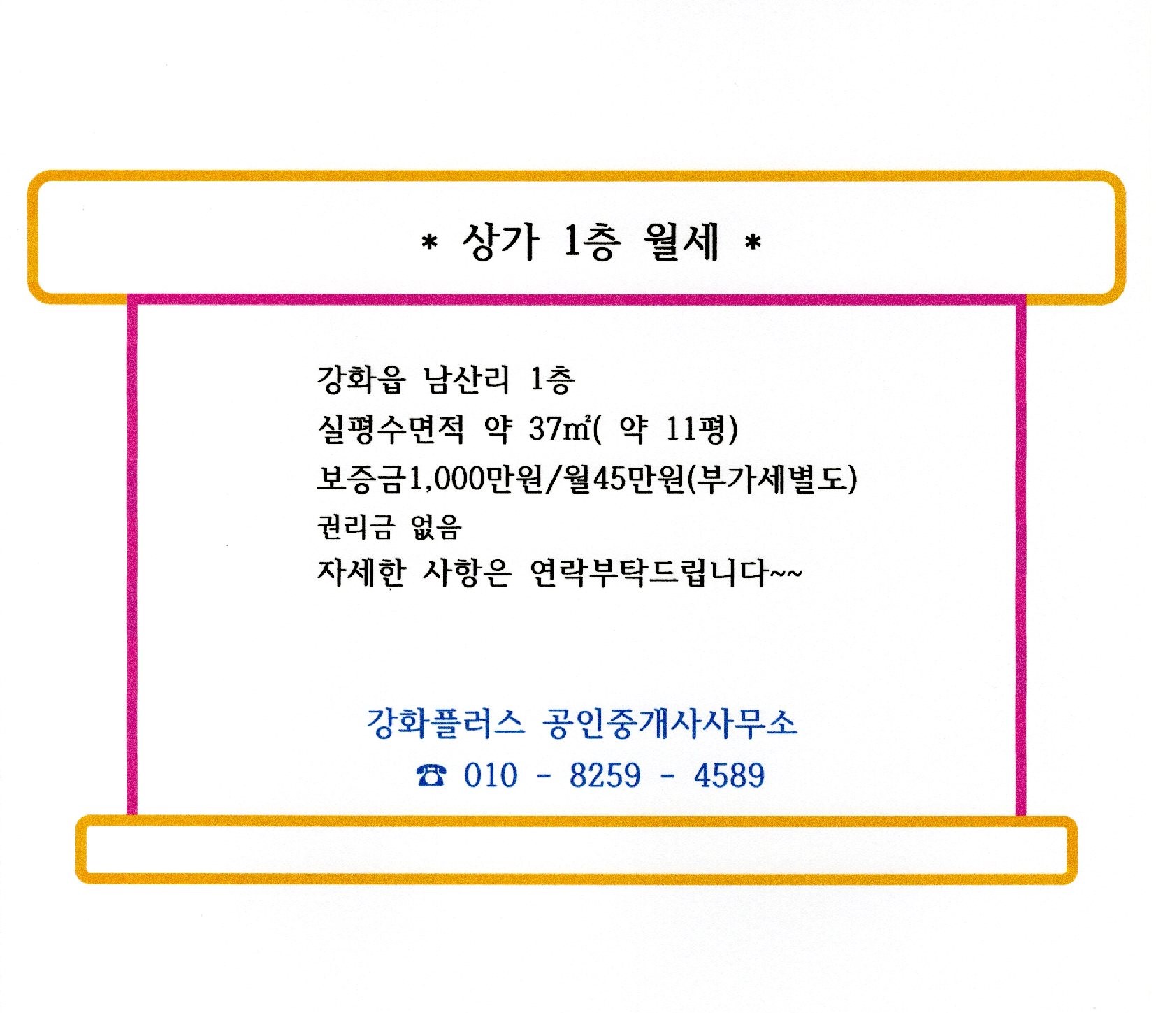 *권리금 없는 상가 월세(1층 강화읍 남산리)/(3층 강화읍 신문리)*