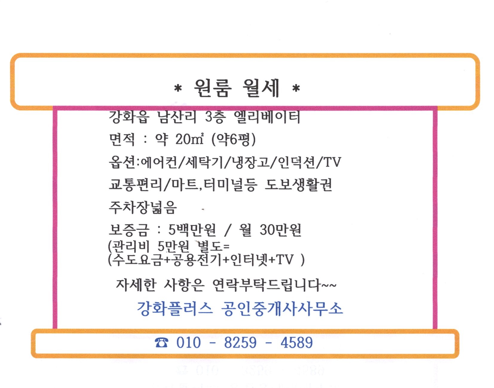 *원룸 월세 강화읍 남산리)/ 원룸 전세(강화읍 남산리)*