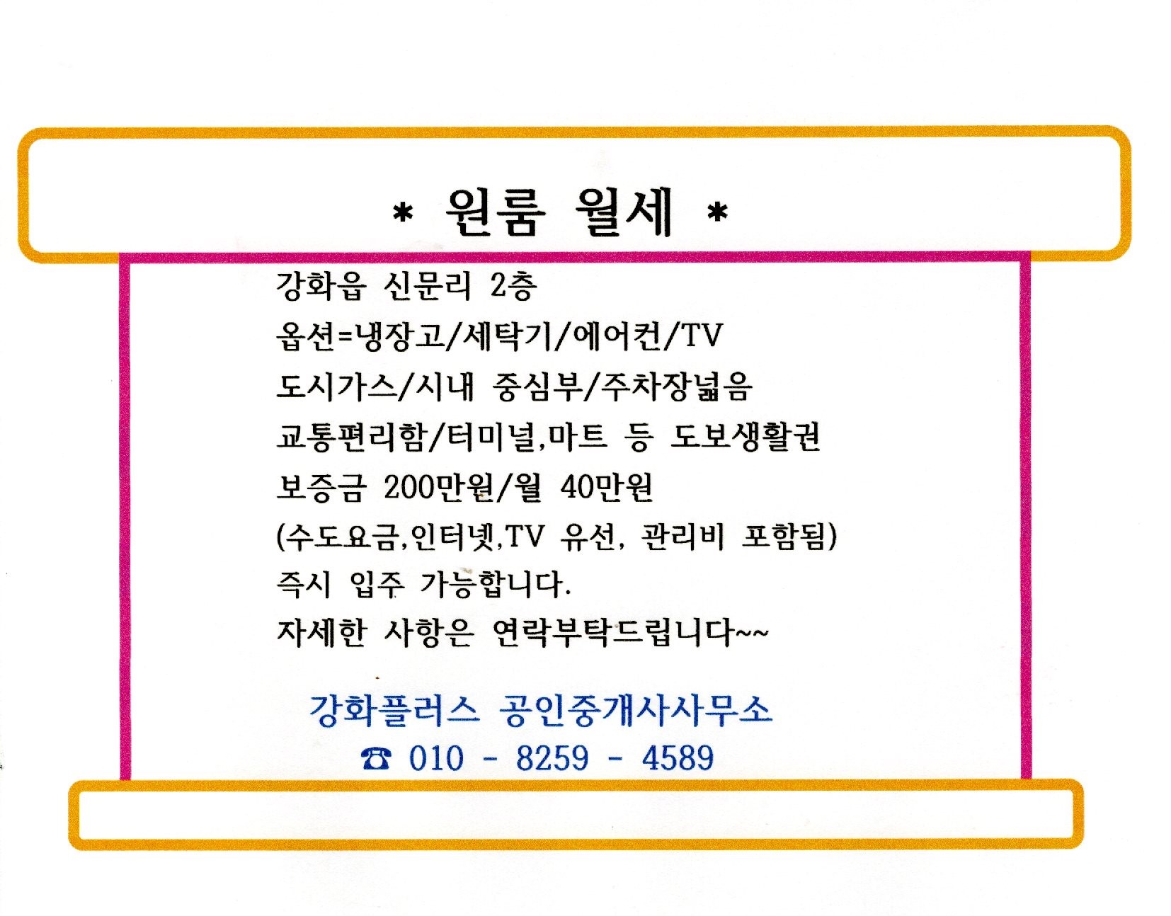 *그랑프리 원룸 월세(강화군청옆)/신문리 원룸 월세*