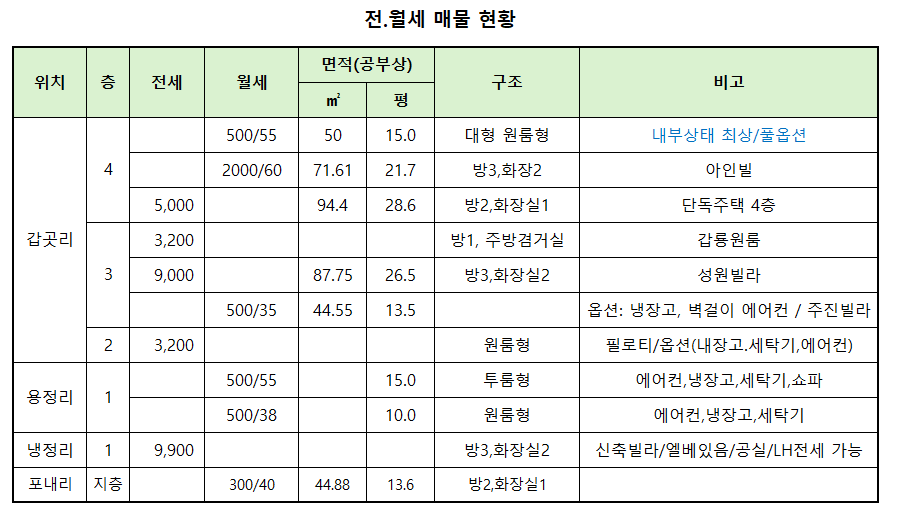 • 위 사항에 맞지 않을 경우, 통보 없이 임의 삭제 될 수 있습니다. 본 게시판은 중개업소 및 주민 자율참여 정보란으로 관련법 위반 예외로 발생한 문제에 대해서는 군청에서 책임지지 않으니 이용에 참고하시기 바랍니다.