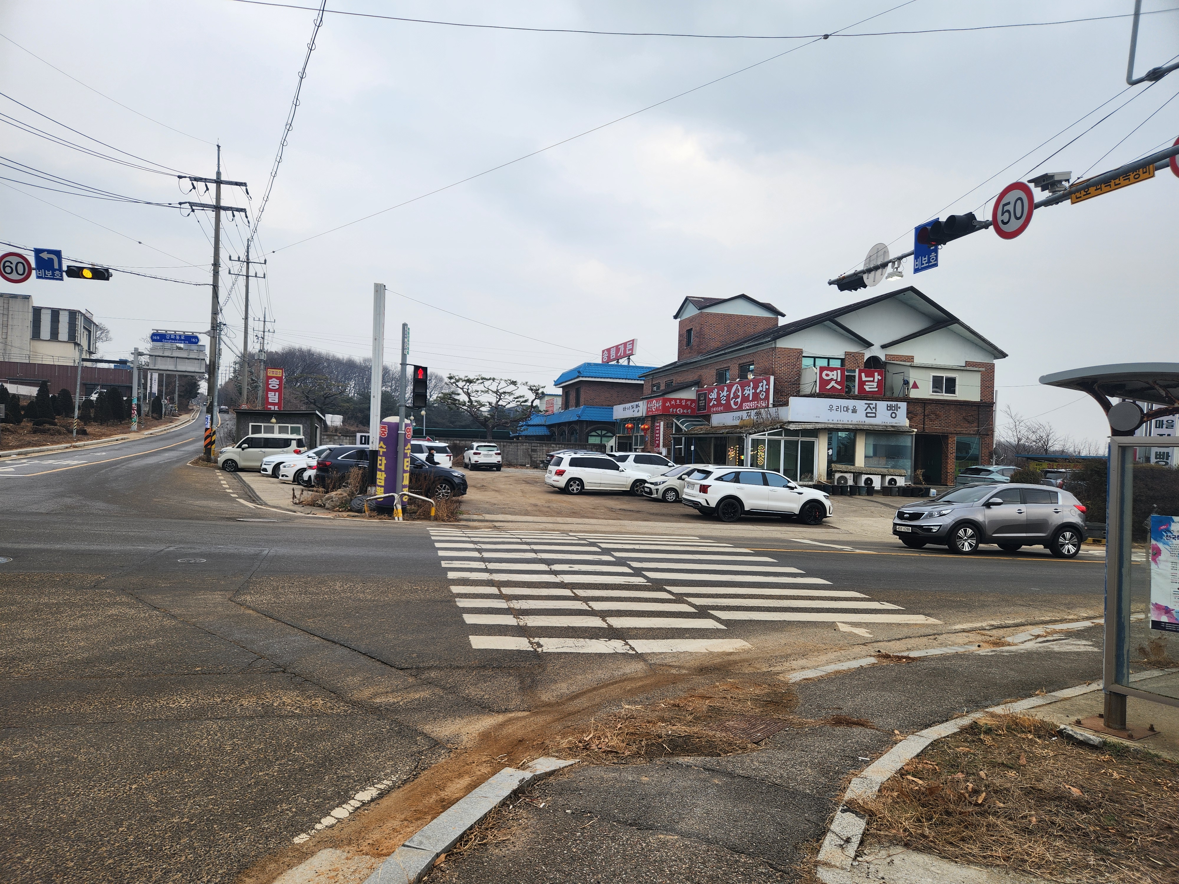 강화읍 알미골 사거리처럼 대로로 확장 공사중인 사거리 코너에 있습니다.