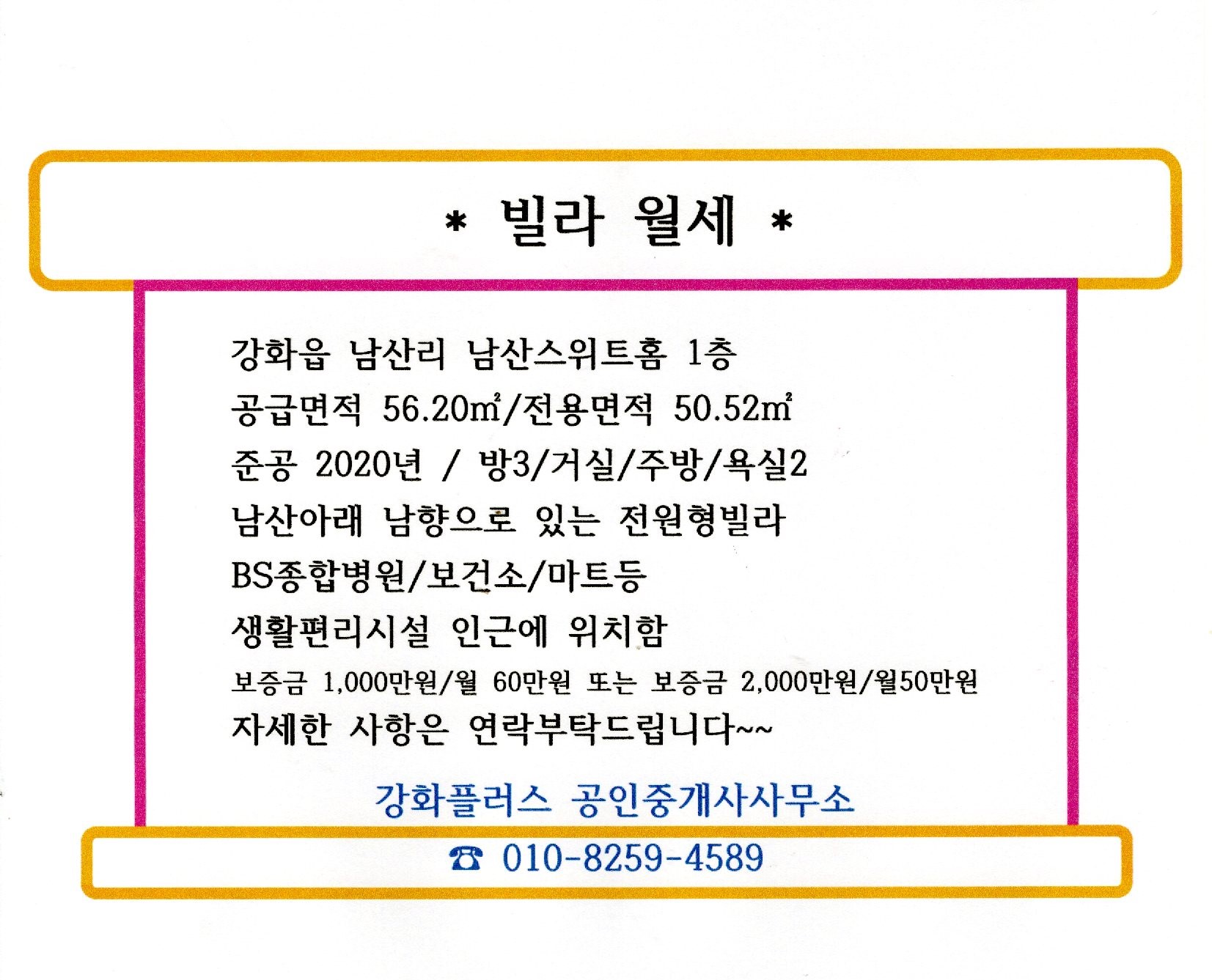 *2020년 신축 남산스위트홈 빌라 1층 월세(강화읍 남산리)*